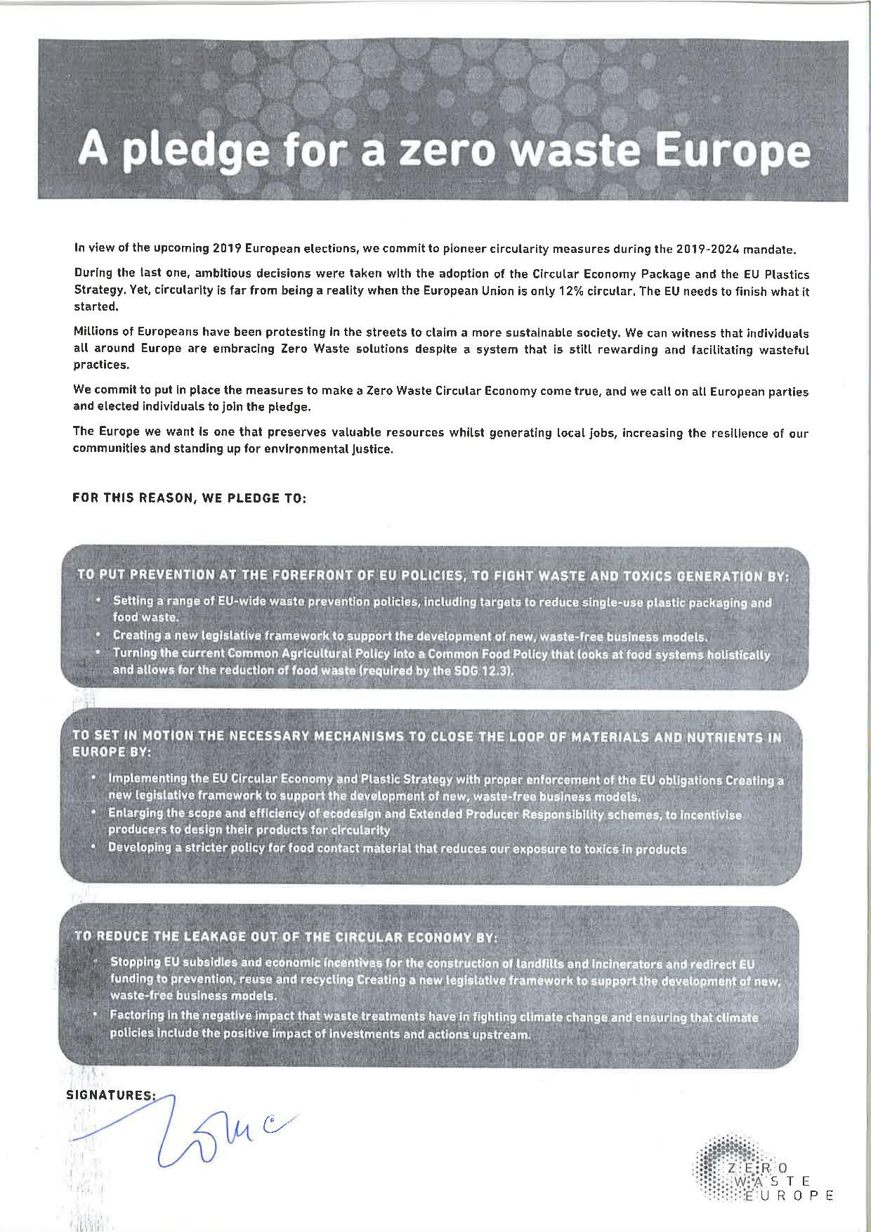 Cilj pobude je zmanjšati uporabo plastike za enkratno uporabo kot tudi zavrženje hrane. Z novim zakonodajnim okvirom želi spodbuditi nove projekte in poslovne modele, ki bodo delovali v smeri brez odpadkov ter ustvariti strožja pravila glede strupene embalaže v kateri se prodaja hrana, ki jo uživamo.