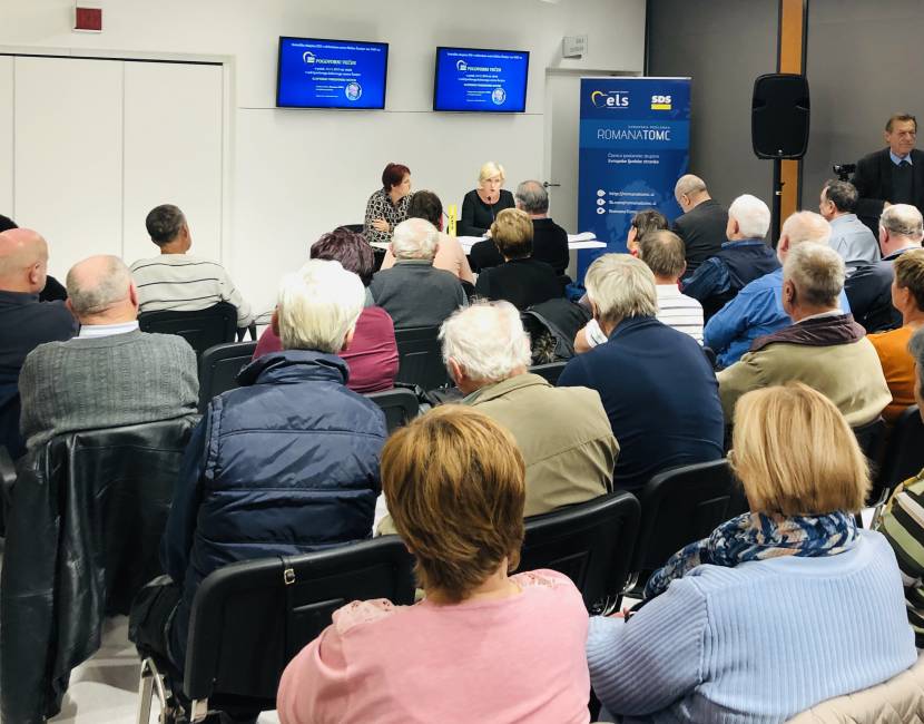 Kaj prinaša nova pokojninska zakonodaja in kaj napovedane spremembe v praksi pomenijo za slovenske upokojence? Tema, ki je zaradi težkega položaja upokojencev v Sloveniji zelo aktualna, je, po besedah osrednje gostje pogovornega večera, evropske poslanke poslanke Romane Tomc, tudi zelo zapletena: “Ljudem v Sloveniji je težko razložiti, zakaj je situacija takšna, kot je in zakaj so njihove pokojnine tako nizke. Naš pokojninski sistem je namreč izredno zapleten.” Pogovor, ki je potekal v polni dvorani Ipavčevega doma v Šentjurju, je povezovala poslanka v Državnem zboru, Jelka Godec.