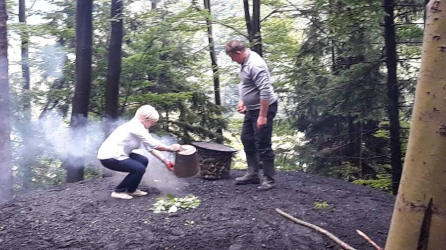 Po izročilu mora kopo prižgati ženska. Včeraj je čast prižiga največja kope v Evropi doletela mene. Čez približno 3 tedne bo iz nje nastalo 20 ton oglja. Tradicija ogljarstva v Dolah pri Litiji.